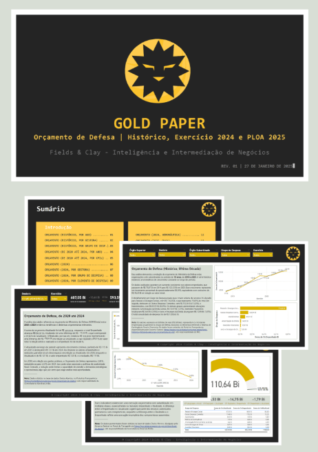 No complexo cenário de Defesa no Brasil, compreender o orçamento destinado às Forças Armadas e seus impactos é essencial para gestores, empresários e pesquisadores interessados no setor. A Fields & Clay, reconhecida por sua expertise em Inteligência de Mercado e Intermediação de Negócios no segmento de Defesa e Segurança, lançou recentemente o relatório “Gold Paper — Orçamento de Defesa | Histórico, Exercício 2024 e PLOA 2025”.
